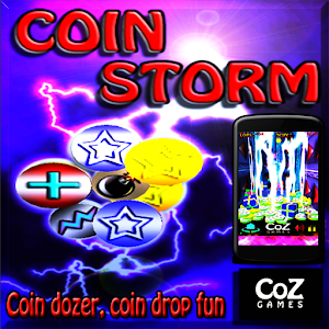 Coin Storm - A coin push game where you drop coins to push other coins over the edge to score, with special coins, power ups, bonuses and prizes.